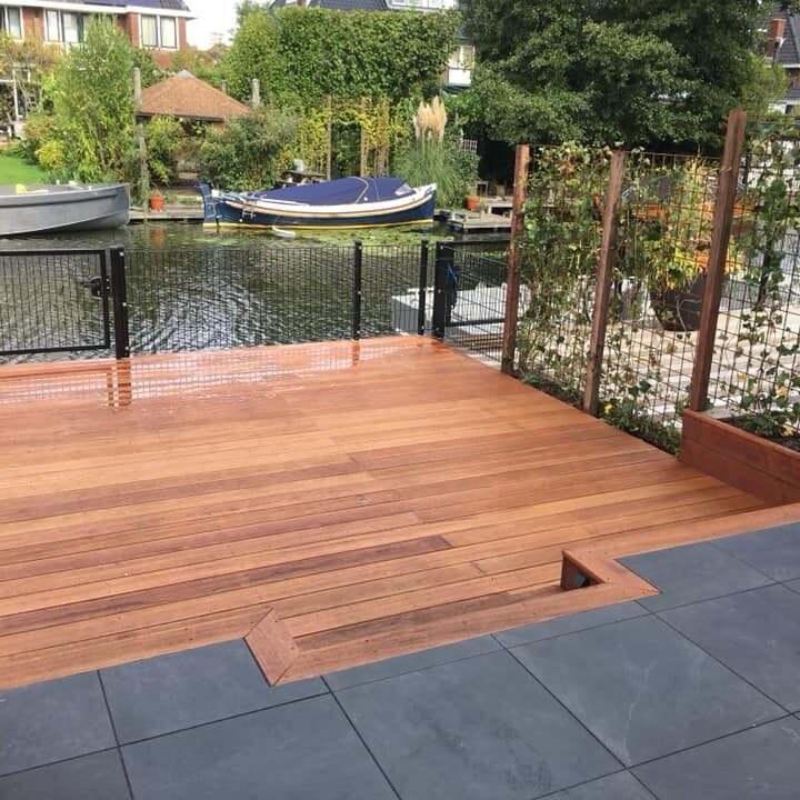 De vlonders bestaan alleen maar uit hardhout en is altijd RVS geschroefd.
