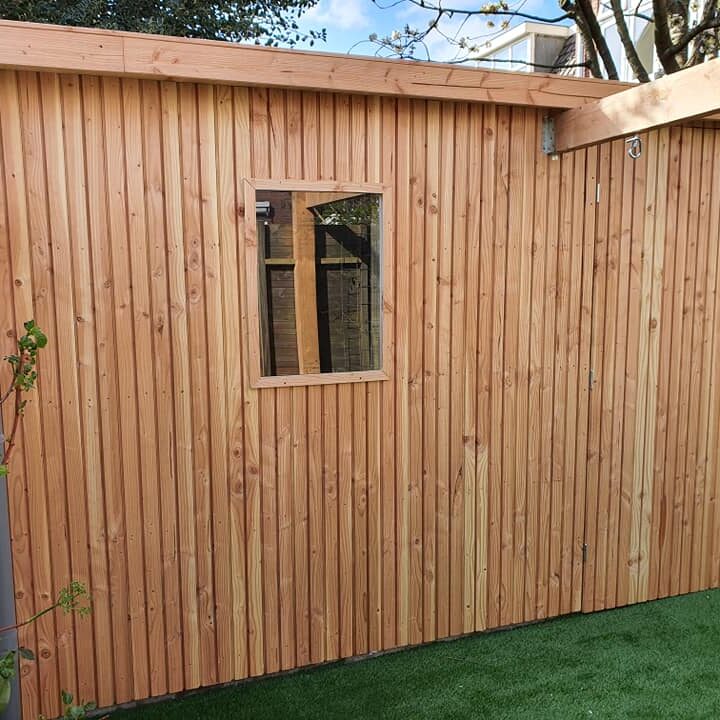De vlonder bestaat volledig uit hardhout. De overkapping is van douglashout.